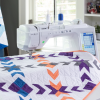 The Brother Innov-ìs BQ3100 advanced quilting sewing machine is perfect for all your quiltmaking and sewing needs. Featuring a compact MuVit Digital Dual Feed that s easier to use than before, it offers increased visibility and better functioning with thicker materials, stitches forward and backward for unprecedented versatility. A large 7 colour LCD touchscreen display controls the machine via intuitive icons and lets you watch onscreen tutorials. Brighten your fabric with a 10-inch glow around the needle using the enhanced LED lighting on the generous 11.25″ workspace. Expand your creativity with over 750 utility and decorative stitches, buttonhole styles, and fonts and use My Custom Stitch to create your own stitches and add some personalization. Enjoy the convenience of features like a pivot function that automatically lifts the presser foot leaving the needle in the fabric for easy cornering and fabric manipulation, and sideways and directional sewing that lets you sew straight or zigzag stitches not only forward and backward, but sideways and diagonal too. A full USB port makes it easy connect to a computer for easy software updates and upgrades. It also accepts USB media for adding or saving additional stitches or for connecting a USB mouse (not included) to use with the machine’s screen. Touch your fabric with the V-Sonic Pen for needle placement, stitch width setting, and positioning the endpoint of a line of stitches. When it comes time to quilt, piece, or sew, align rows of decorative stitches in smooth straight lines with the Sew Straight Laser Vision Guide. The Automatic Height Adjuster (AHA) keeps presser-foot pressure constant ensuring consistent stitch length on all fabric thicknesses, producing more consistent stitch quality on uneven surfaces. It includes a Quilters Bundle with a variety of add-ons.