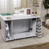 The Cutting Table is the perfect companion workstation for any sewing room or crafting center. Its designed to provide a generous double-sided storage solution with two front drawers and an alcove, while the back features accessory and fabric bin storage. Its expansive work surface is built at an ideal ergonomic height for working while standing.